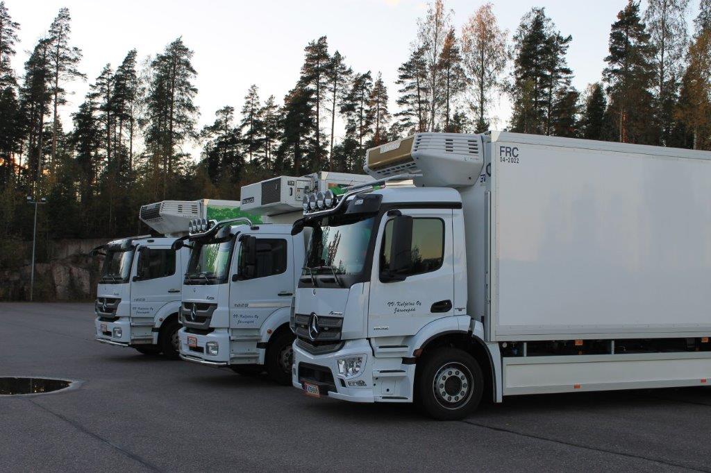 Kalustoomme kuuluu 10 kuorma-autoa ja 2 pakettiautoa. Autoissamme on lämpösäädettävät kylmälaitteet, jotka voidaan asettaa kahteen eri lämpötilaan pakastinlämpötiloja sekä jääkaappilämpötiloja tarvitsevia tuotteita varten. Tutustu autoihimme alla olevasta galleriasta.